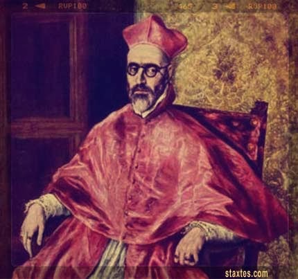 Αυτό που μπορούμε να κάνουμε είναι να αποτυπώσουμε την όψη αυτών των ατιμαστών του Χριστού». Πίσω από το καβαλέτο του ο Ντομένικος Θεοντοκόπουλος παρατηρεί το πρόσωπο του Μεγάλου Ιεροεξεταστή Νίνιο ντε Γκεβάρα προτού σύρει τις πρώτες γραμμές στην προσωπογραφία που του παραγγέλθηκε. Ο φοβερός καρδινάλιος, υπεύθυνος για εκατοντάδες θανάτους «αιρετικών», διαβάζει σιωπηλός. Είναι ντυμένος τα βιολετί μάλλινα ράσα της Σαρακοστής των Χριστουγέννων. Στο στυφό κροκοκίτρινο πρόσωπό του δύο ουρανί μάτια κινούνται πίσω από ένα ζευγάρι στρογγυλά γυαλιά με σκούρο σκελετό. Στην πλατεία της Μητρόπολης της Σεβίλλης ακούγονται πατημασιές αλόγου. Καθώς ο ήλιος πέφτει, η μακριά πομπή των δομινικανών μοναχών, των μετανοημένων και των πελιδνών αιρετικών, η τρομερή πομπή της Ιεράς Εξέτασης ετοιμάζεται να ξεκινήσει.