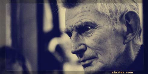 Γυρίζει, βλέπει το δεύτερο κύβο, τον παρατηρεί, τον τοποθετεί κάτω απ’ την καράφα, τον δοκιμάζει αν είναι σταθερός, ανεβαίνει, προσπαθεί να φτάσει την καράφα. Μάταια. Κατεβαίνει, θέλει να ξαναφέρει τον κύβο στη θέση του, αλλάζει γνώμη, τον αφήνει, πάει προς το μεγάλο κύβο, τον παίρνει, τον τοποθετεί πάνω στο μικρό, τον δοκιμάζει αν είναι σταθερός, ανεβαίνει, ο μεγάλος κύβος γλυστράει. Ο άντρας πέφτει, ξανασηκώνεται αμέσως, ξεσκονίζεται, σκέφτεται.