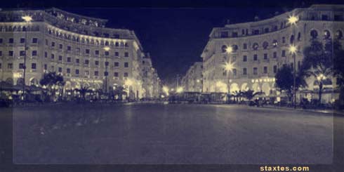 Η Αριστοτέλους άδεια. Πουθενά περαστικοί, περιστέρι κανένα. Το μεγάλο ρολόι κι αυτό σταματημένο. Αν φωνάξω θ’ ακουστώ ως τα κάστρα. Tο δοκιμάζω. Μου απαντάνε. Ξανά. Το ίδιο.