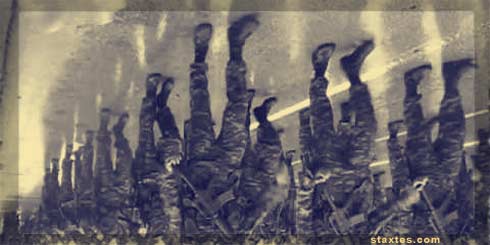 -”Για μια στιγμή!”, θα απορουσε κι ο Αντρικος διακόπτοντας την αφήγηση, προφητικος για τουλαχιστον μια τριακονταετια μετα και παντα λαικιστης, ενιοτε και γλυκερος. “Για ποιο λογο η παρελαση καταντησε σιδηρόφραχτη και ιδιωτική, κλειστη για μια ελιτιστικη δρακα; Για ποιο λογο σε μια συγκεκριμένη πολη του βορρα η εξέδρα των επισήμων είναι στημενη ακριβως κατω απο το γερμανικό προξενείο; Για ποιο λογο οι εκεί παρελαυνοντες να στρεφουν το κεφάλι τους και μαζι με τους επισημους να χαιρετουν εκτος από τη Σημαια της πατριδας τους και τον τευτονικο αετο πανω απο το κεφαλι τους; Γιατι στο βαθρο να τρυπώνουν και οι σύζυγοι των επισήμων με τα καρω ταγεράκια, τους χοντρούς κώλους και το μαλλί ξυμένο λάχανο από το κομμωτήριο αποβραδίς, βαμμένο ειδικά για την περίσταση; Γιατί άραγε ο επίσημοι να στέκονται σε βάθρο; Γιατι να υπαρχει βάθρο; Δικαιουνται οι λογης επισημοι εποπτικότερη θέση από την Εθνική Αντίσταση; Τους Αναπήρους Πολέμου; Τον Ερυθρό Σταυρό; Τα ΛΟΚ; Το καθαρό βλεμμα των μαθητρών με τα στενά μίνι φουστανάκια; Των μαθητών με το ζελέ στο μαλλί και τα κινητά στην κωλότσεπη, κι ας μην εχουν ακομα εφευρεθει;”, να, κάτι τέτοια θα έλεγε ο Αντρίκος, πλατειάζοντας ενδεχομενως, ενώ είχε ολοκληρώσει τη σκέψη του για να συνεχιστεί και η αφήγηση-