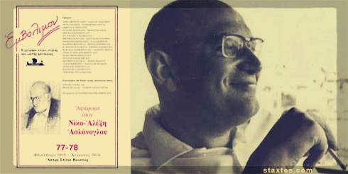 Προδημοσίευση της συμμετοχής του ποιητή Σ.Π. στο περιοδικό Εμβόλιμον #77-78 (Φθινόπωρο 2015-Χειμώνας 2016),«Αφιέρωμα στον Νίκο-Αλέξη Ασλάνογλου» Γράφουν: Άννα Αφεντουλίδου, Βασίλης Βασιλικός, Χρύσα Βλάχου, Παναγιώτης Γούτας, Γιώργος Χ. Θεοχάρης, Βασίλης Ιωαννίδης, Θωμάς Ιωάννου, Έφη καλογεροπούλου, Βαλεντίνη Καμπάτζα, κ.α.