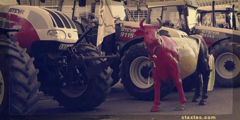 Χρησιμοποίησα αποσπάσματα από το βιβλίο του Θεοδωρόπουλου για να στηρίξω την άποψή μου για τις αγελάδες, χωρίς να γνωρίζω φυσικά την προσωπική του άποψη για αυτές. Το βιβλίο του θέτει καίρια ερωτήματα για τον ευρωπαικό πολιτισμό την εποχή της παγκοσμιοποίησης και δημιουργεί ερωτήματα και αναπτύσει αντισώματα για την επερχόμενη πολιτιστική λαίλαπα. Είχα τελειώσει το άρθρο όταν έλαβα το από την εταιρία παιγνιδιών για το καταπληκτικό gadget της, διαβάστε: «Το κιτ Αγελάδα Cow Parade είναι εμπνευσμένο από την πρωτοποριακή αυτή έκθεση και σας δίνει την ευκαιρία να συμμετέχετε στο event φιλοτεχνώντας ένα μικρό λευκό άγαλμα αγελάδας κι εκθέτοντας το έργο σας στο σπίτι ή ακόμα και το γραφείο σας! Η συσκευασία περιέχει έξι βασικά ακρυλικά χρώματα και πινέλο υψηλής ποιότητας για να βγάλετε τον καλλιτέχνη που κρύβετε μέσα σας και να εκφράσετε την έμπνευσή σας με τον καλύτερο τρόπο».