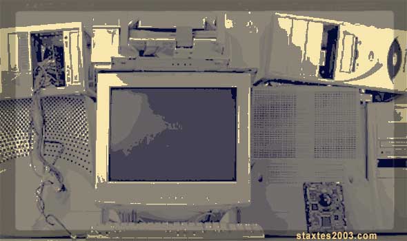Μ ένα τρακτέρι, αμάξι δεν πήγαινε στη μέση του λιοφύτου, έφερε την πραμάτεια του. Κουτάκια, άλλα πολύχρωμα, άλλα διάφανα με ξένα γράμματα, με καλώδια, αντάπτορες, παράξενες πρίζες, διακόπτες, δισκέτες, καθαριστικά σπρέι υπολογιστών, απίστευτα πράγματα, κανείς δεν είχε δει ποτέ τέτοια πράγματα, και ένα υπολογιστή IBM PC με δυό δισκέτες! Αυτό κι αν ήταν θαύμα.