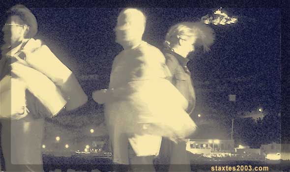 Αὐτὰ στὶς πλαγιὲς τοῦ λόφου, γιατὶ στὴν κορφὴ τὸ τοπίο ἄλλαζε: τρεῖς μαυροφορεμένες κάθονταν πάνω στὰ γόνατά τους καὶ σκίζανε τὰ στήθια τους καὶ σέρναν τὰ μαλλιά τους ἢ ἔριχναν τὰ χέρια τους κατὰ τὸν οὐρανὸ καὶ ὠρύονταν τρομαχτικὰ γιὰ τὸν ἄγουρο ποὺ στεκόταν λίγο πιὸ ψηλὰ σὲ σχῆμα σταυροῦ.