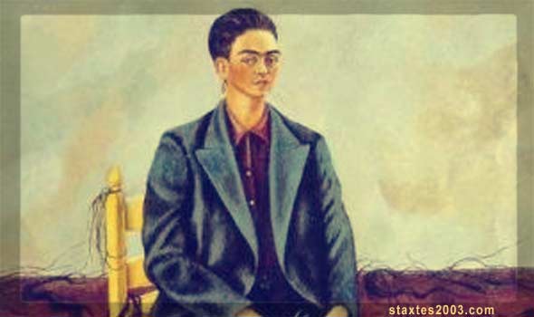 Η Φρίντα ανοίγει τα μάτια της και τρέμει σαν φύλλο που πέφτει καταγής. Σηκώνεται σιωπηλή και πηγαίνει προς την ντουλάπα. Ο Ντιέγκο έχει αφήσει μέσα το κοστούμι που είχε φορέσει στον γάμο τους. Το ξεκρεμάει, το φέρνει κοντά στο στέρνο της και το μυρίζει. Το ταιριάζει στους ώμους της. Ύστερα αρχίζει να χορεύει χτυπώντας τα πόδια της στο πάτωμα και απλώνοντας τα χέρια της ψηλά σαν φτερά πληγωμένου πουλιού. Χορεύοντας φτάνει μέχρι τον καθρέφτη. Εκεί φοράει το κουστούμι. Με δύναμη τρυπάει την αγκράφα και σφίγγει τη ζώνη. Σιγοτραγουδάει. Ανοίγει το συρτάρι και αρπάζει το ψαλίδι. Λύνει τα μαλλιά της και τα χτενίζει με τα χέρια της. Τεντώνει μια τούφα και την κόβει.
