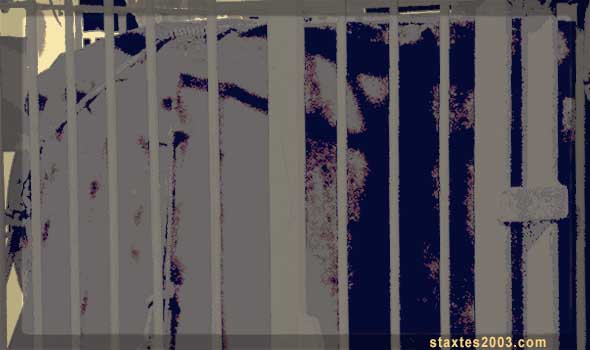 Η κεντρική πόρτα άνοιγε σ’ ένα μεγάλο χώρο γιομάτο πολλές και βαριές βιβλιοθήκες καρφωμένες στους τοίχους, πλην μιας που βρέθηκε πεσμένη στο κέντρο της σάλας και γύρω και κάτω απ’ αυτήν πεταμένα εκατοντάδες βιβλία. Αδιαφορώντας για αυτήν την ακαταστασία έκαναν β ι α σ τ ι κ ά τη σχετική έρευνα σε όλη την υπόλοιπη έπαυλη κι αφού δεν βρήκαν κάτι έφυγαν κλείνοντας την πόρτα και βυθίζοντας ξανά στο σκοτάδι όλη τη σάλα, εκτός από μια λεπτή και μακρόστενη λωρίδα φωτός που ξεκινούσε από μια εξίσου λεπτή χαραμάδα ενός εκ των παραθύρων, πέρναγε σύριζα απ’ την πεσμένη βιβλιοθήκη και κατέληγε απέναντι στο γυμνό τοίχο εκεί όπου βρισκόταν καρφωμένη η εν λόγω βιβλιοθήκη. Περνώντας, όμως, σύριζα απ’ τη βιβλιοθήκη, φανέρωνε κι ένα χέρι ανάμεσα στα πεταμένα βιβλία!
