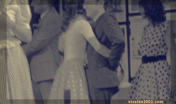 Μια άλλη φιγούρα φθάνει τραγουδώντας από το βάθος του διαδρόμου. Σαν να χορεύει, συναντά τους δυο άνδρες μα δεν δείχνει να νοιάζεται. Κρατά το ποτό της και όλο χορεύει, προσέχοντας τα βήματά της.