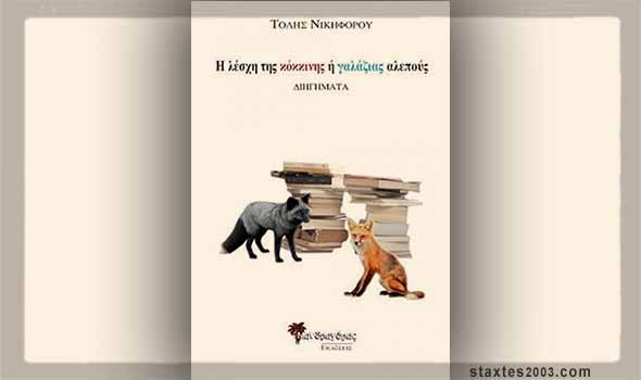 Μ’ αυτό το καλαίσθητο βιβλίο ο ποιητής Τόλης Νικηφόρου, ο Νέστορας της Εταιρίας Λογοτεχνών Θεσσαλονίκης, ο αιώνιος εραστής της ζωής και του έρωτα, της ποίησης και της ποίησης πέρα από την ποίηση, της ανάγνωσης και της γραφής μας αποκαλύπτει την εμονική αγάπη του για το βιβλίο και την ανάγνωση από την πρώτη νεανική ηλικία. Μια αγάπη που άρχισε από τα οικογενειακά και συγγενικά αναγνώσματα, απλώθηκε στην βιβλιοθήκη του Αμερικανικού κολεγίου Ανατόλια, όπου φοίτησε, όπως και σε βιβλιοθήκες στους τόπους περιδιάβασής του και στη συνέχεια γιγαντώθηκε και εκφράστηκε μέσα από τη δημιουργία και τον συντονισμό Λεσχών ανάγνωσης σε πολλές βιβλιοθήκες του γενέθλιου τόπου, ώσπου έφτασε στην πρωτοποριακή και καινοτόμο δημιουργία της Λέσχης της κόκκινης ή γαλάζιας αλεπούς, της πρώτης λέσχης ανάγνωσης ποίησης που έχει ποτέ λειτουργήσει στον τόπο μας, απ’ όπου και ο τίτλος του βιβλίου. Αποτελεί επίσης τον τίτλο της πρώτης από τις δέκα πέντε αφηγήσεις που περιέχει το βιβλίο, στην οποία περιγράφεται μεταξύ άλλων το όλο εγχείρημα της λέσχης ανάγνωσης ποίησης στη στέγη της Εταιρίας Λογοτεχνών Θεσσαλονίκης, την ιδέα, τον σχεδιασμό, το έργο, τη συμμετοχή και την ενεργό δράση των μελών, όπου καταδεικνύεται η αγάπη του ακάματου δημιουργού προς τους νέους ομότεχνους, τους οποίους δίνει βήμα και φτερά προβάλλοντας το έργο τους.