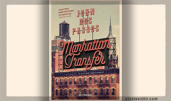 Το Manhattan Transfer είναι το χρονικό της πόλης της Νέας Υόρκης στις αρχές του εικοστού αιώνα. Ένα παθιασμένο μυθιστόρημα στο οποίο ο συγγραφέας ανατέμνει ισότιμα τις ζωές των πλούσιων χρηματιστών και των μεταναστών που αγωνίζονται για τον επιούσιο και παρακολουθεί από κοντά τους αγώνες τους να ενταχθούν στη «νέα» μοντέρνα κοινωνία πριν αυτή τους καταπιεί.