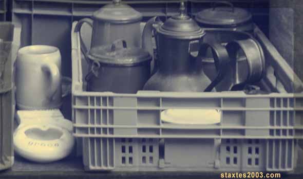 Τραπέζια, καρέκλες, κορνίζες, χαλιά, καλώδια, κατσαρόλες.