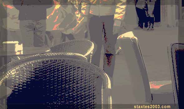 [Ο γέρος καφετζής πλησίασε. Φορούσε γαλάζιο πουκαμισάκι καλοκαιρινό και χοντρά γυαλιά. Ίσως να ήταν ο γέρο θάνατος, επειδή σαν έκλεινε πίσω της την πόρτα ετούτο το έργο, πρόλαβε και είπε, «εκείνη η ώρα ήρθε και δεν παίρνει αναβολή». Αργότερα ακούμπησε την ράχη του επάνω στον χρόνο και αποκοιμήθηκε για πάντα.)