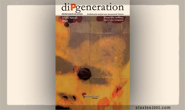 Το νέο, 7ο, τεύχος του περιοδικού diPgeneration, που επιμελείται η Ιφιγένεια Σιαφάκα, βρίσκεται ήδη στα Βιβλιοπωλεία. Συμμετέχουμε οι: ΧΡΙΣΤΙΝΑ ΚΑΡΑΝΤΩΝΗ – ΚΩΝΣΤΑΝΤΙΝΟΣ Χ. ΛΟΥΚΟΠΟΥΛΟΣ – ΑΝΑΣΤΑΣΗΣ ΜΑΔΑΜΟΠΟΥΛΟΣ – ΜΑΡΙΑ ΜΑΝΔΑΛΟΥ – ΑΝΤΩΝΗΣ ΜΠΑΛΑΣΟΠΟΥΛΟΣ – ΑΝΤΩΝΗΣ ΣΑΠΟΥΝΤΖΑΚΗΣ – ΙΦΙΓΕΝΕΙΑ ΣΙΑΦΑΚΑ – ΓΕΩΡΓΙΑ ΤΑΤΣΗ – ΑΘΗΝΑ ΤΙΤΑΚΗ.