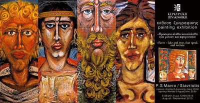 Τα «Πρόσωπά» του P.S.Mavro, ομοιάζουν να έχουν βγει μέσα από αγιογραφίες, ή από τις φωτογραφίες συγγενών που βρίσκονται κορνιζαρισμένες και κρεμασμένες στα παλιά σπίτια μας. Η φθορά, ο θάνατος, η λησμονιά, ή η ανάμνηση καταγράφετε και υποδεικνύετε εικαστικά, πολλές φορές ακόμα και με ένα ιδιότυπο πικρό σαρκαστικό χιούμορ. Mε αυτό το εικαστικό αλλά και λεκτικό σαρκασμό (του P.S.Mavro) προβάλλονται τα βαθύτερα «δράματα» που δημιουργούνται από τις σχέσεις και τις ιδιαιτερότητες των ανθρώπων. Οι προσωπικές ιστορίες όλων μας, έχουν ως αφετηρία πάντα κάποια αιτία, παρουσιάζουν μία απρόβλεπτη πλοκή… και σχεδόν συχνά μας οδηγούν σε οδυνηρή κατάληξη.