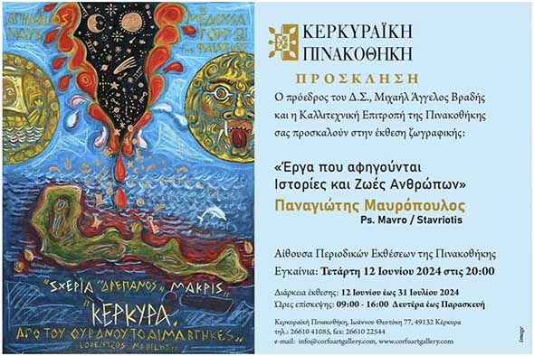 Εγκαινιάζεται την Τετάρτη 12 Ιουνίου στις 20:00 στην Αίθουσα Περιοδικών Εκθέσεων της Κερκυραϊκής Πινακοθήκης, η έκθεση με τίτλο «Έργα που αφηγούνται Ιστορίες και Ζωές Ανθρώπων» του εικαστικού Παναγιώτη Μαυρόπουλου.